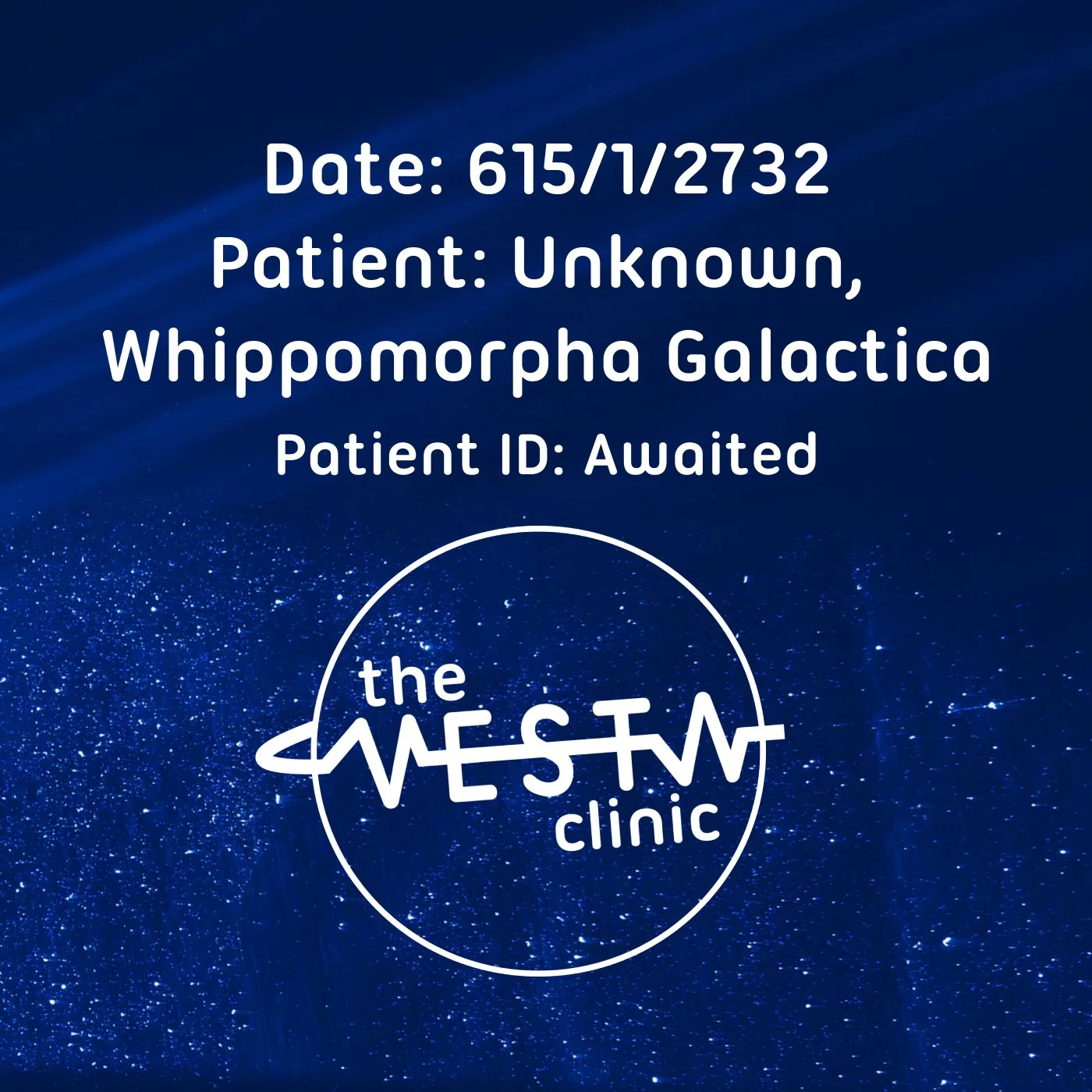 Uh, patient: Unknown, star whale. Uh, that's a whippomorpha galactica.